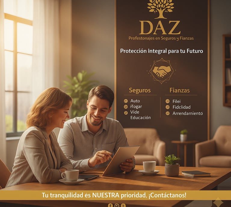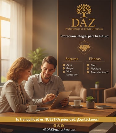 DAZ Profesionales en Seguros y Fianzas es una firma especializada en ofrecer asesoría integral en seguros y fianzas, con enfoque en la confianza, transparencia y servicio personalizado.