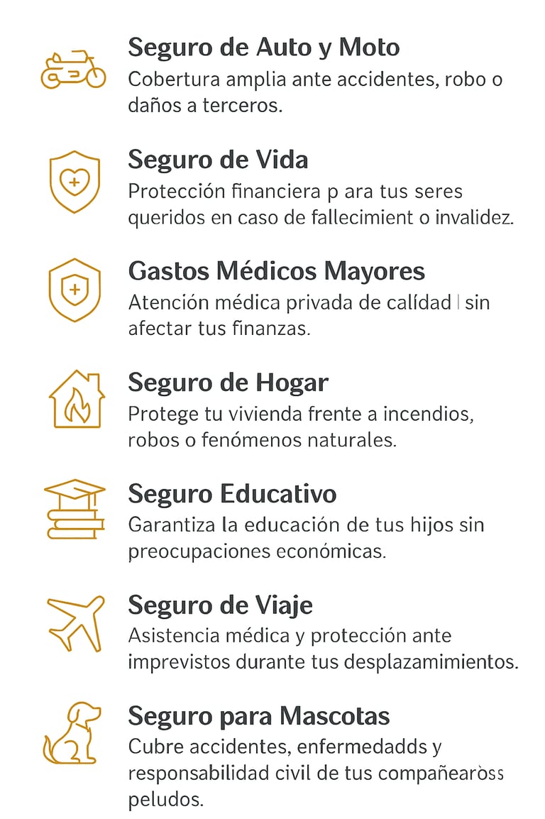 Nuestra labor consiste en ayudarte a tomar decisiones financieras seguras, comparando coberturas y beneficios de distintas aseguradoras para garantizar la mejor protección al mejor valor.